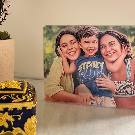 Adquira um retrato em acrílico personalizado e exclusivo para presentear alguém especial.